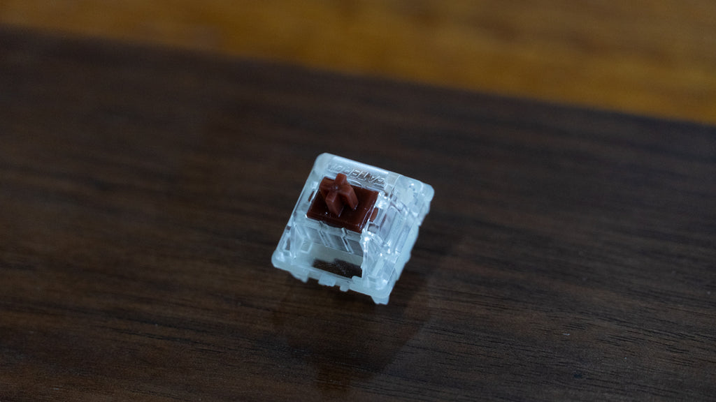 The Brown cap switch has a milky bottom housing.