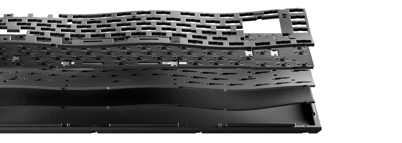 Experience the next level of key sounds and comfort with our gasket mount design together with a flexible PC (Polycarbonate) plate. This design combination allows the keyboard to maintain the flexibility of the gasket structure and improves the overall typing sound.