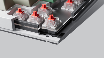 The Double Gasket Design is a new innovative structure in the industry. In addition to the gaskets on the plates, we added silicone pads between the top and bottom cases to significantly reduce the acoustic resonance between the metals and reduce the noise of the impacted metals.