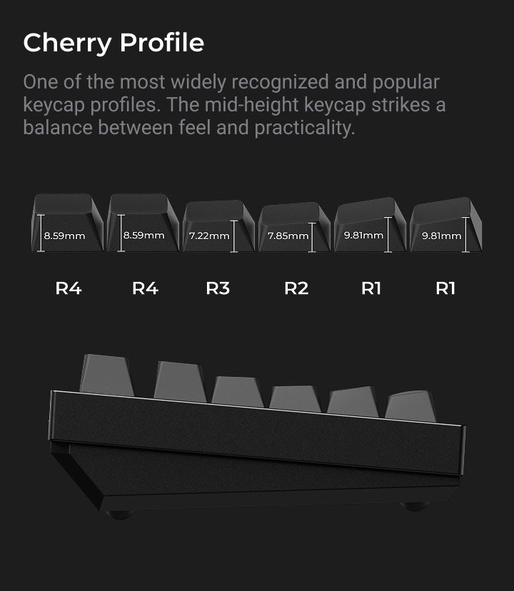 The thickened 1.5mm PBT keycap design goes through a frosted process to give it a grainy surface texture and creates a comfortable touch experience.