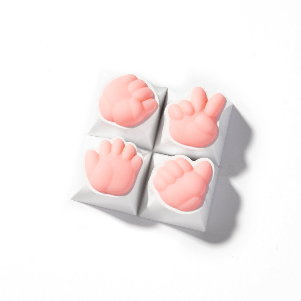 The set features four distinctive finger gesture designs, offering a creative twist not typically seen in standard keycap sets. This innovation adds a playful and personalized flair to any keyboard, catering to those seeking something more unique.