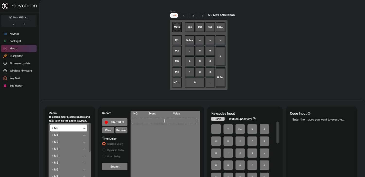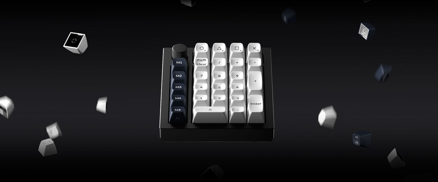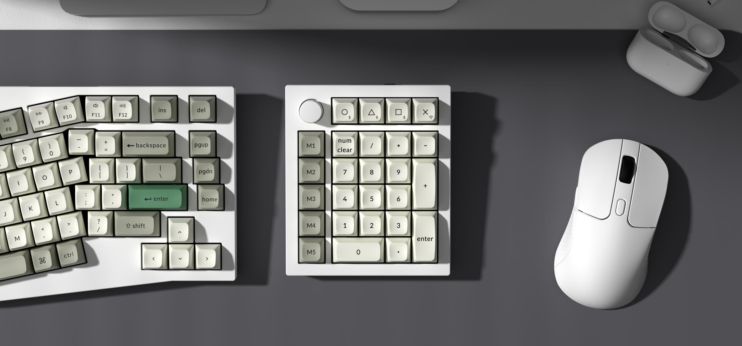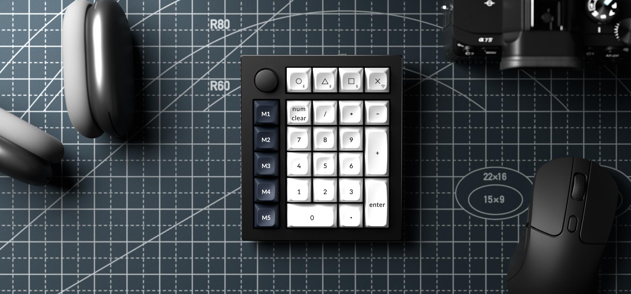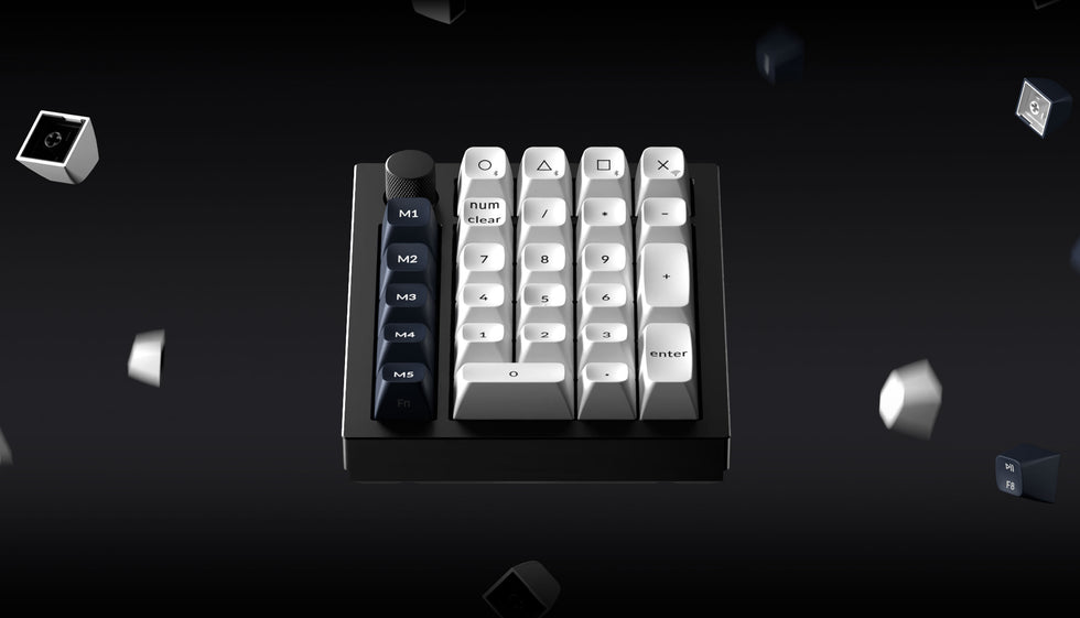 Introducing the Q0 Max, a full-metal custom number pad with a macro column and rotary encoder knob on the left side. Available as a separate numeric keypad or a huge customizable key set with QMK support, Q0 Max is a cluster of function and appearance, offering superior performance such as 2.4 GHz wireless, Bluetooth 5.1, 1000 Hz polling rate, upgraded acoustic foams, double-gasket design, PBT keycaps, and more to elevate your productivity and typing experience.