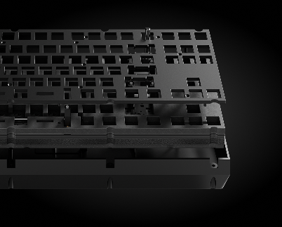 Placed between switches and PCB, the IXPE foam and PET film help reduce keystroke vibration transmission and optimizes typing sound.