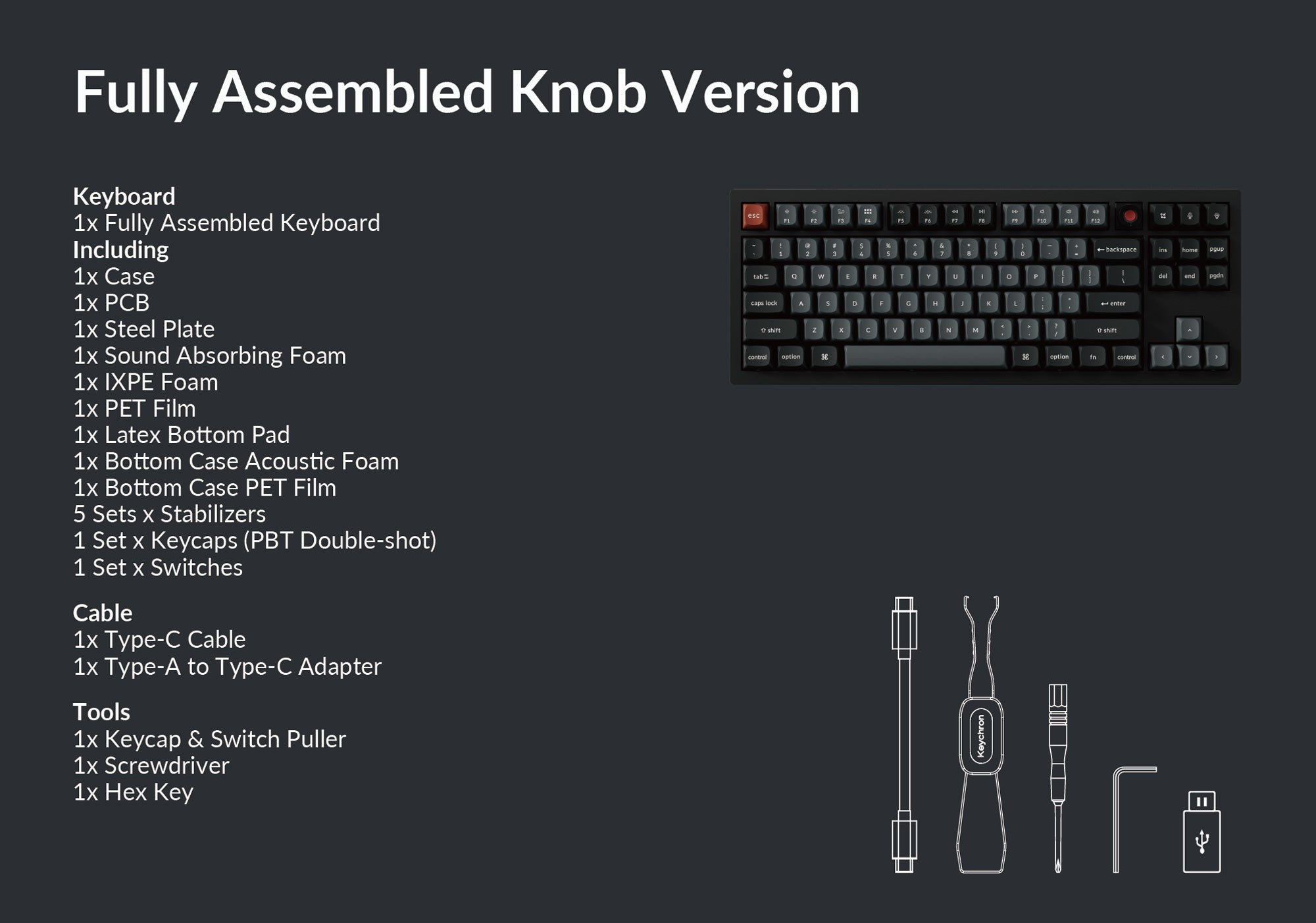 To build a fully customizable keyboard, we designed every component to be able to assembled easily. Therefore, you can customize and adjust each component as you wish.